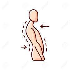 スウェイバック姿勢とは、本来くるぶしの前、膝、股関節、肩、耳が一直線になるのが理想ですが、腰は前の方に移動してしまい、背中は丸まっている状態です。(右のような姿勢)