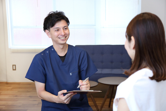 問診表に記載いただいた内容をもとに、今悩んでいる症状について、既往歴、日常生活などのあらゆる角度から問診をしていき、原因追及をしていきます。