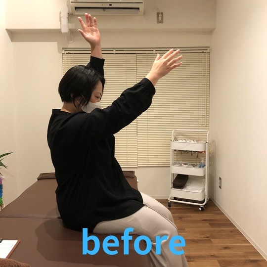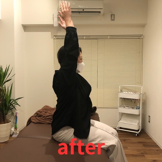 ご来院前は、痛くて上がれない右肩が初回から痛みなく改善!!