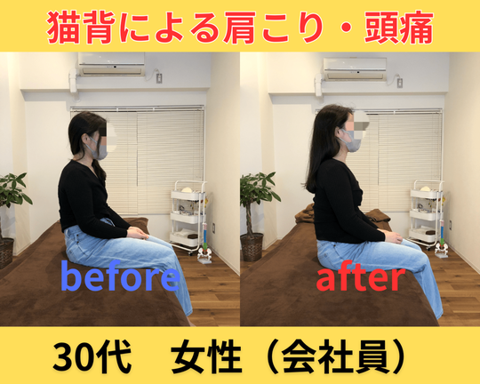 普段は、デスクワークで、肩こりがひどく頭痛や目の疲労感も出る事が多くありました。